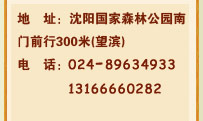 地 址:沈陽(yáng)國(guó)家森林公園南門(mén)前行300米(望濱) 電 話(huà):024-89634933 13166660282  024-24821827